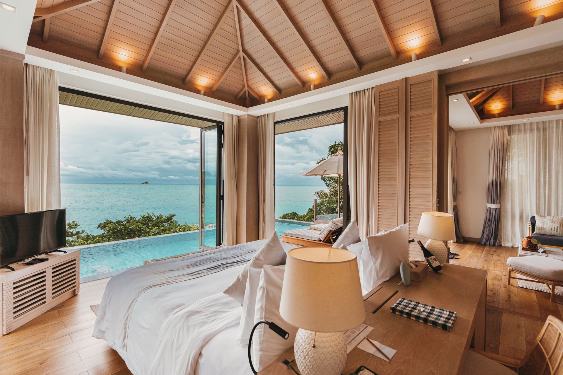 "Cross the sandbar, dine in‑villa, and relax in a private pool villa."